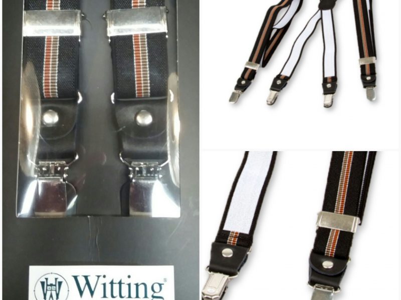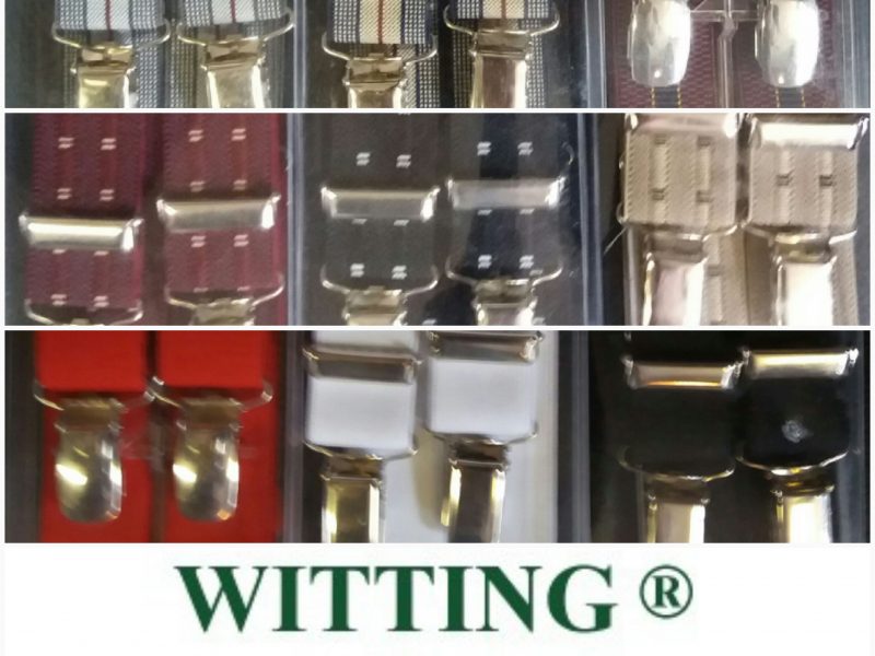 H. Witting & Zn heeft een veelvoud aan leuke bretels, smalle bretels, bredebretels, bretels met clip of bretels met patten en de echte politie- en brandweerbretels. De mouwhouders en sokophouders zijn er ook te vinden.Vlinderstrik : kleurige vlinderstrikken, voorgestrikt of om zelf te vlinderstrikken.